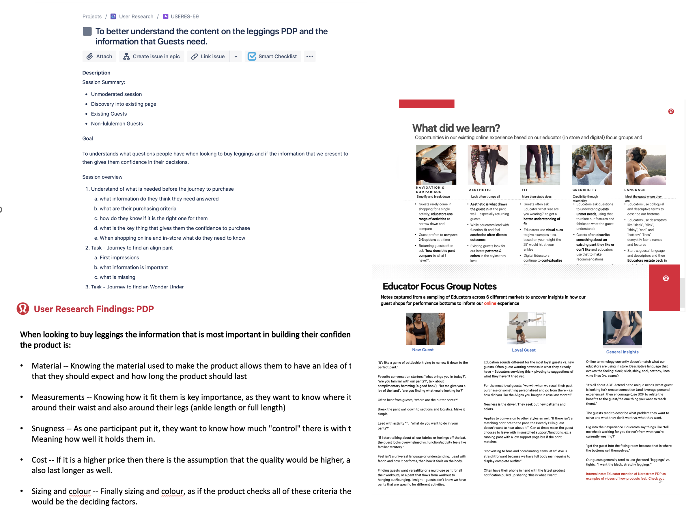 Virtual focus groups with Guest Educators to understand how a guest shops in store for leggings, influencing an omnichannel experience.