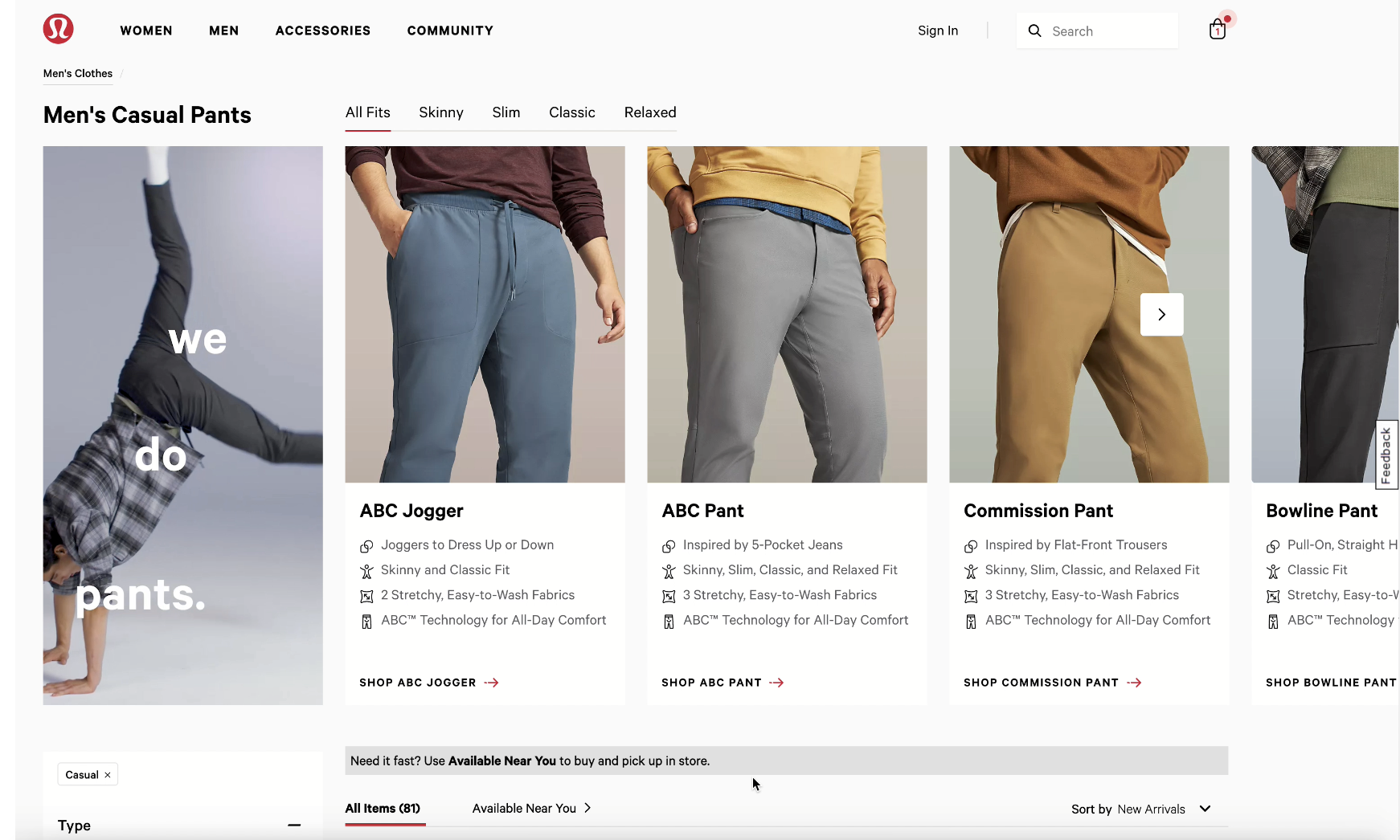 Simplifying product education so guests can quickly differentiate fabrics, fits, and performance features.