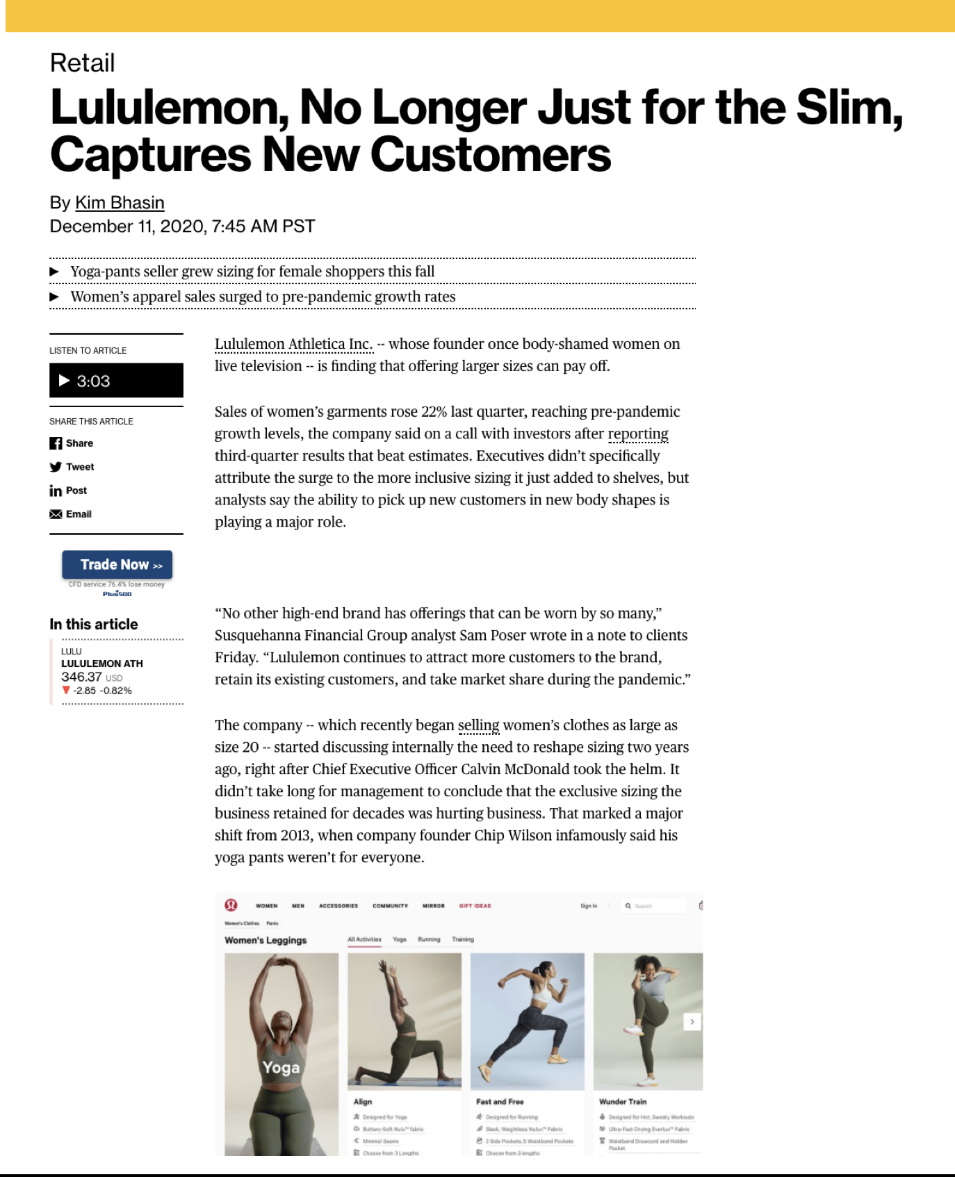 Driving category growth by elevating franchise storytelling and reinforcing lululemon’s leadership in performance apparel.